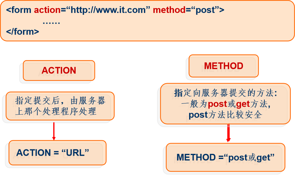 action:设置服务器上处理程序的位置,参数值是一个URL路径。
