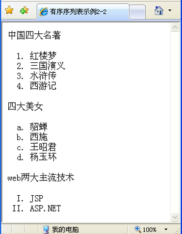 - 用于说明页面中的某些成分,需要按特定的顺序排列。有序列表的每项都有连续的编号。