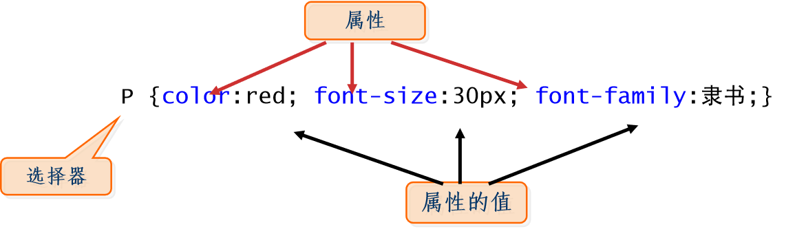 CSS的基本结构由三部分组成:选择器、属性、属性值