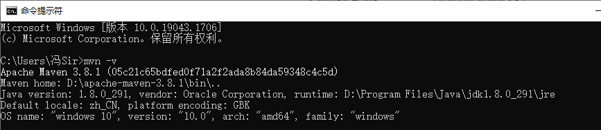 - 在命令行中输入”mvn -v”,能看到以下内容,就说明Maven环境配置好了