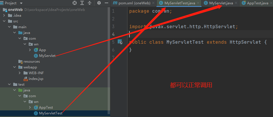 分别在test和main下面建立servlet的子类,我发现都可以正常使用