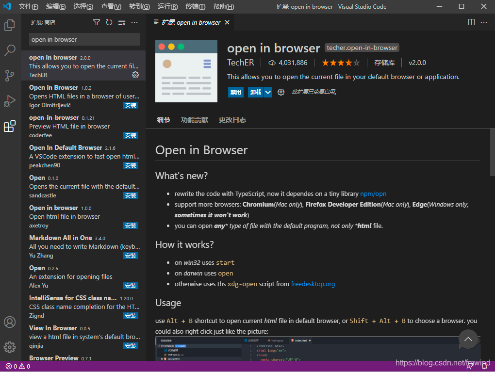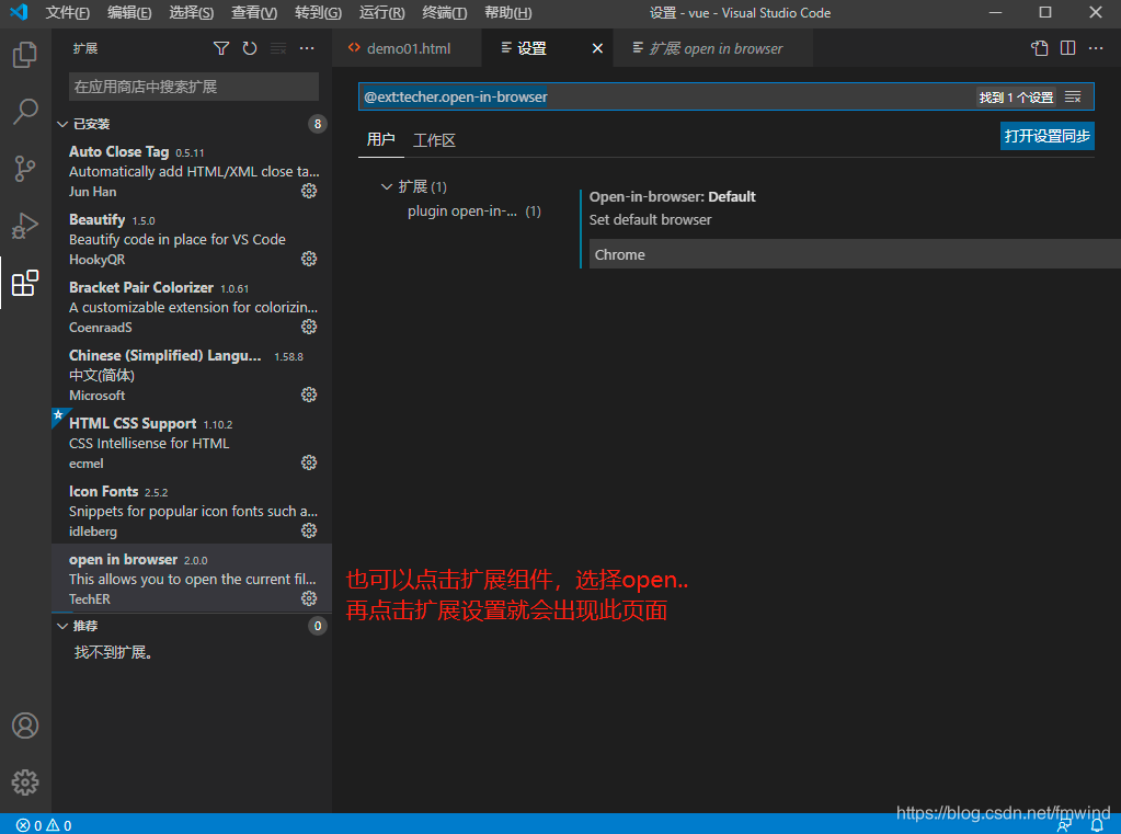 3.4 open in browser(右键快速在浏览器中打开html文件)