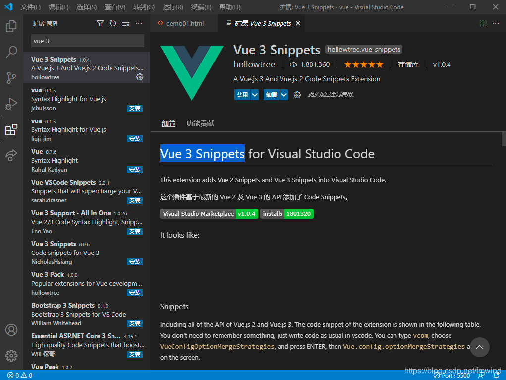 3.9 Vue 3 Snippets vue常用参数补全