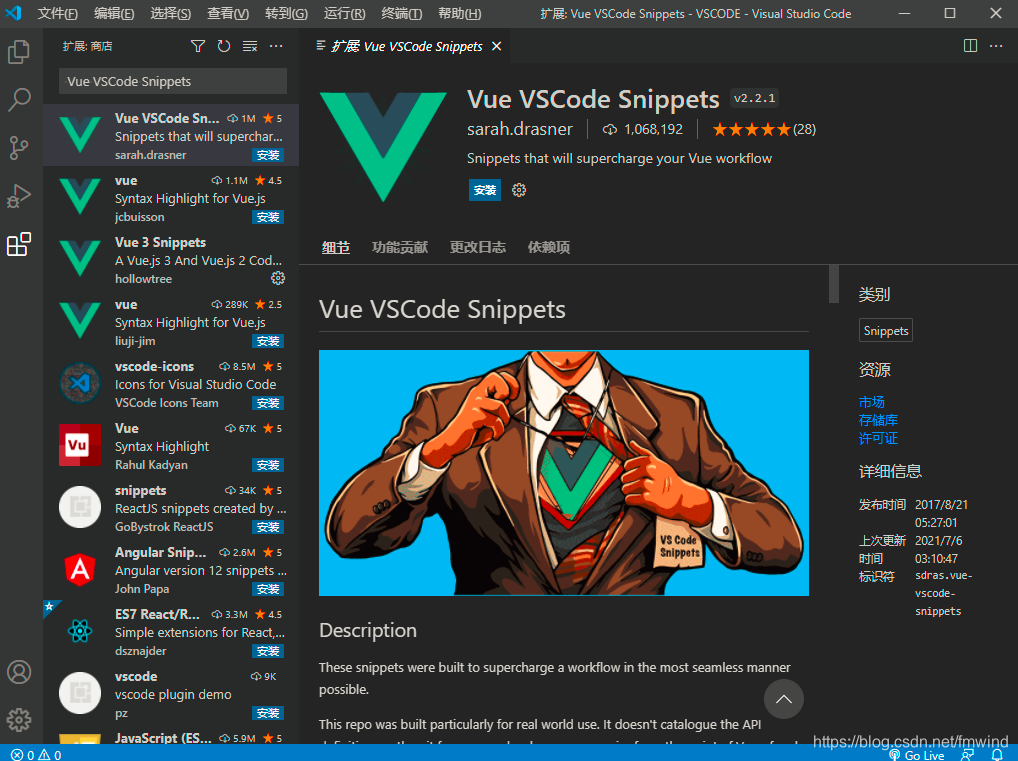 3.10 Vue VSCode Snippets常用参数补全(和上面的提示功能相似,可以自己对比下载)