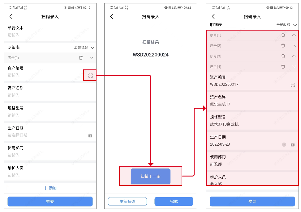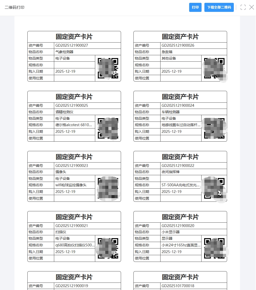 步骤6:扫码使用+数据同步。粘贴标签后,移动端可连续扫码录入数据,提升批量盘点效率;物品信息变动时,系统修改后二维码信息自动同步,无需重制标签,扫码记录全程可追溯,满足合规要求。
