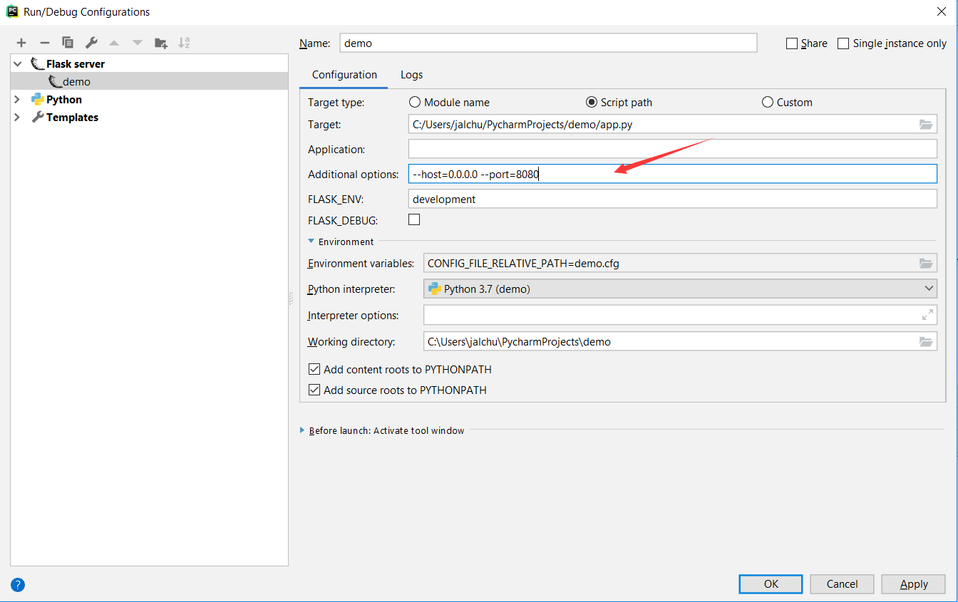 右上角打开 "Edit Configurations" ,在Additional Options处设置启动参数