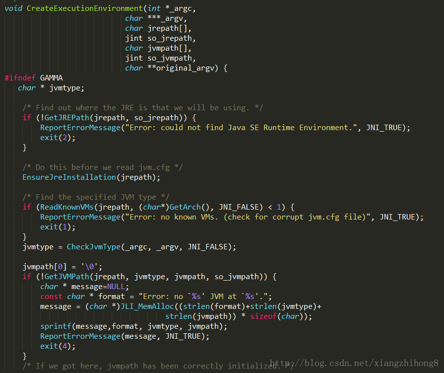 1.首先便是查找jre路径,获取jre路径后,通过jvm.cfg文件的相关配置等获取JVM类型名,而后获取JVM.dll路径。