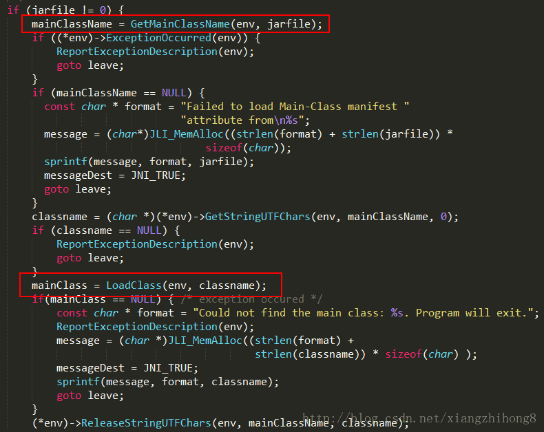 4.运行程序时,通过GetMainClassName函数获取JNIEnv实例,调用其GetStaticMethodID方法可以在类装载后调用类main方法执行。