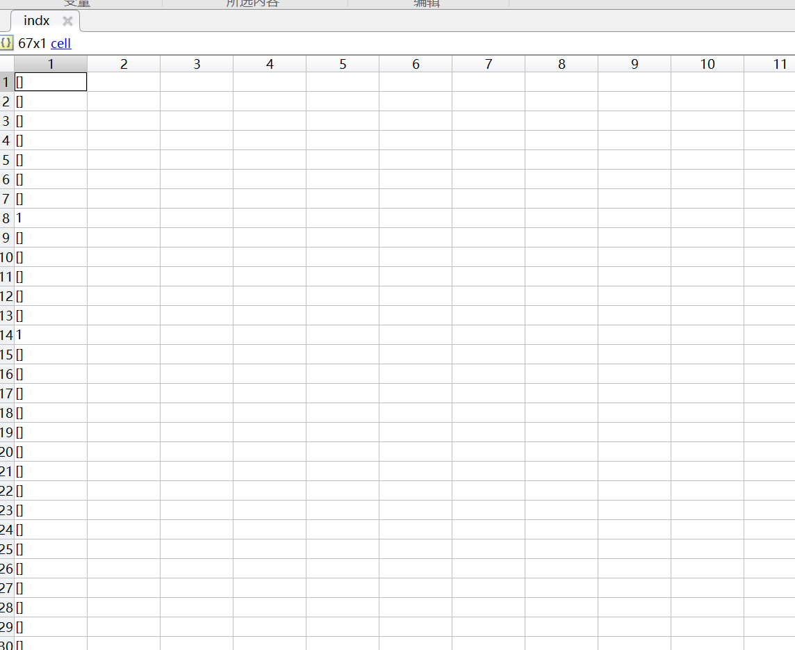 注意:cell数组只能数值型或者单字符的数据 有效