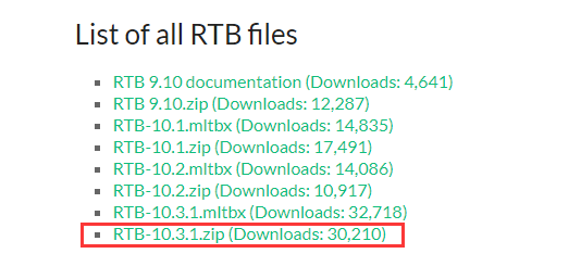 1、打开网页,找到List of all RTB files目录,选择RTB-10.3.1.zip文件下载,并解压;