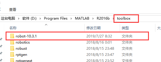2、将解压后的robot-10.3.1工具箱放在matlab安装路径的Toolbox文件夹下面(放在其他位置也可以,只不过matlab的默认工具箱位置在这个地方)