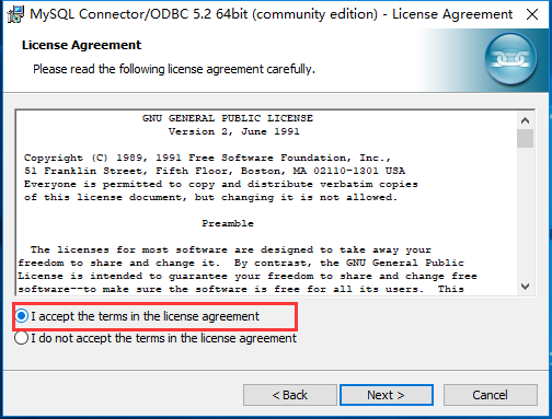 选择:I accept the terms in the license agreement