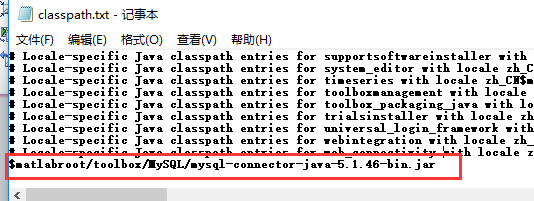 在classpath.txt添加$matlabroot/toolbox/MySQL/mysql-connector-java-5.1.46-bin.jar