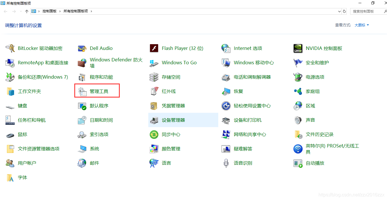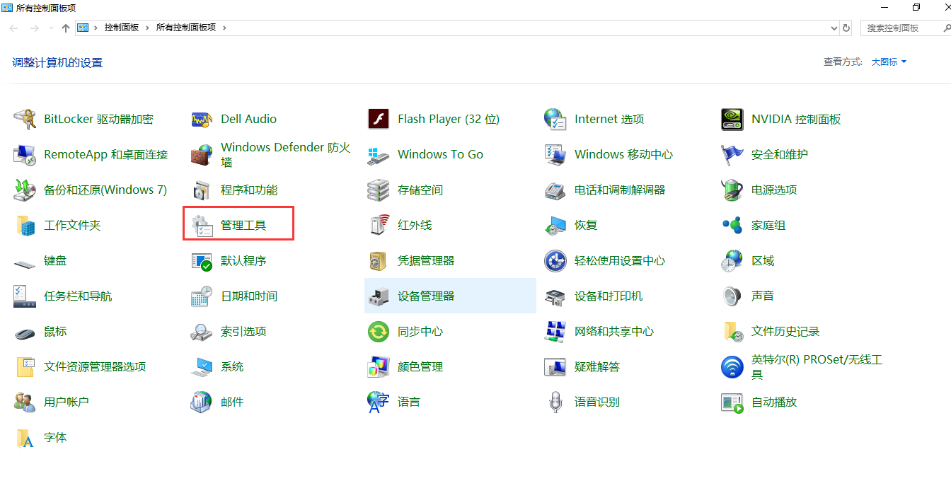 ODBC驱动安装完毕,打开控制面板,选择管理工具,