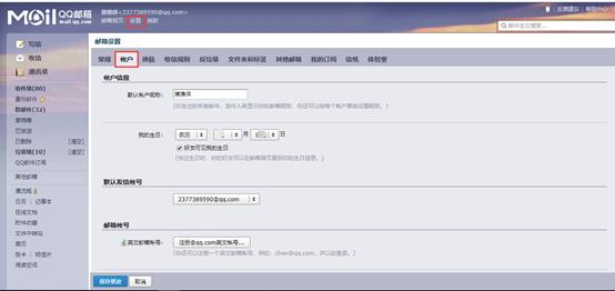 2.需要先开启邮箱的smtp服务,下面以qq邮箱为例,打开QQ邮箱点击设置下的账户