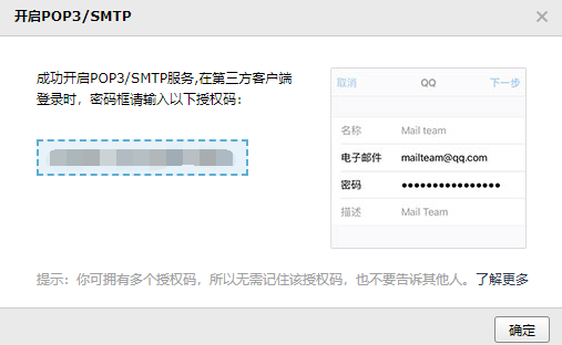3.开启 把红色框的那个,点击开启后,最后你会获得一个授权码,记住这个授权码,然后第一步就完成了