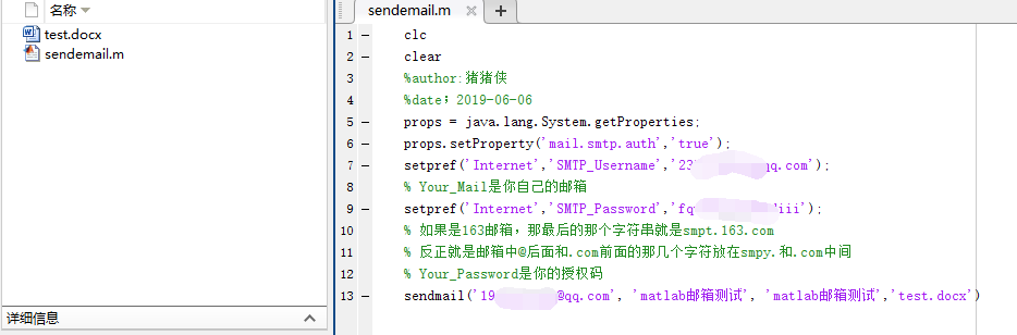 sendmail('收件人的邮箱', 'matlab邮箱测试', 'matlab邮箱测试','test.docx')