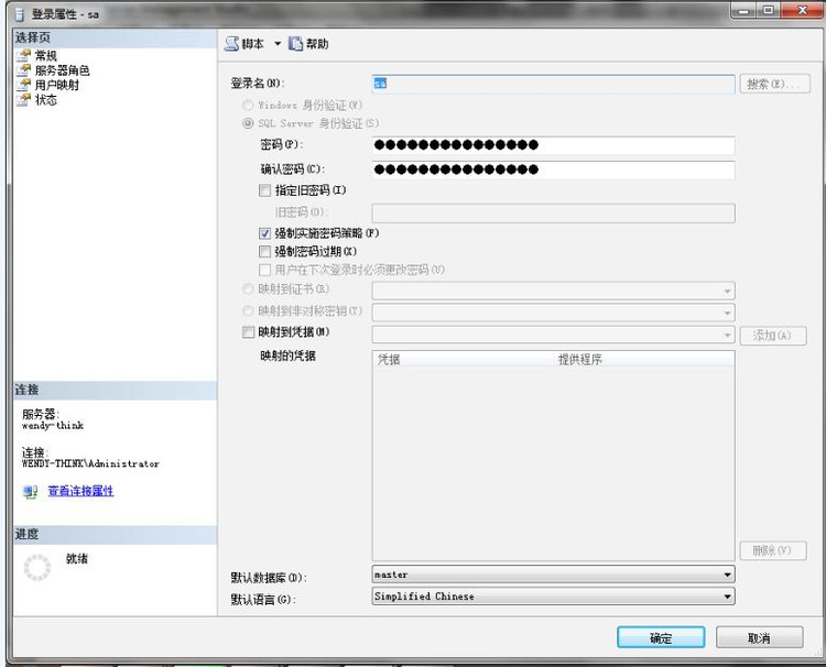 设置sa新的密码,然后就可以用sa用户名进行SQL Server登录了。