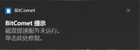 当磁盘提速服务有问题时 内置通知栏会弹出通知