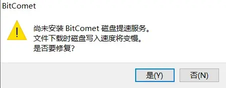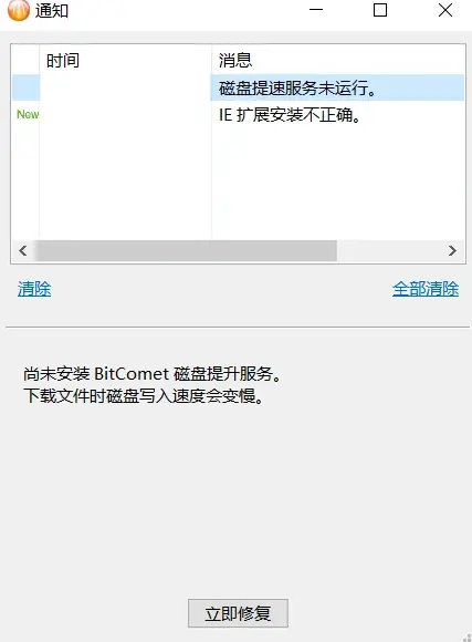 通常在彗星启动的时候会检查提速服务状态 若有异常会弹出通知提示修复