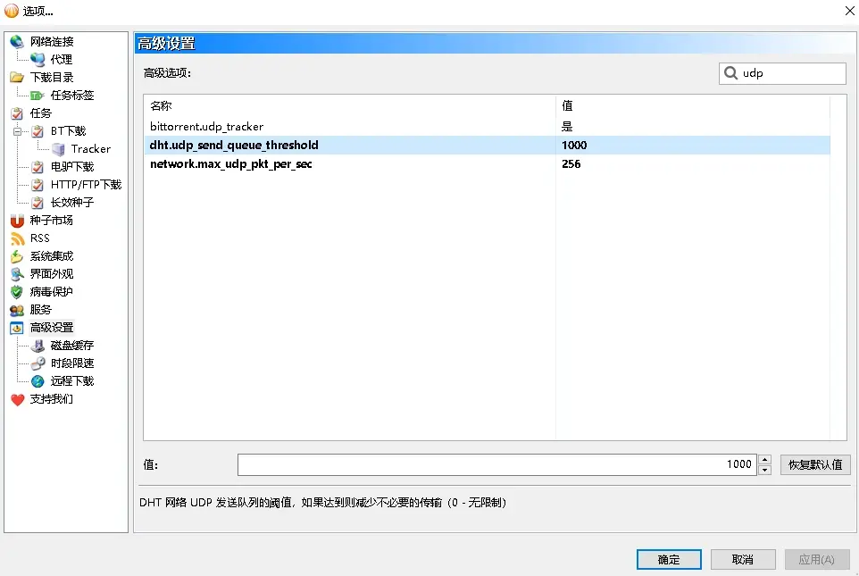 BT传输缓存和长效种子上传缓存 最小不应小于512
