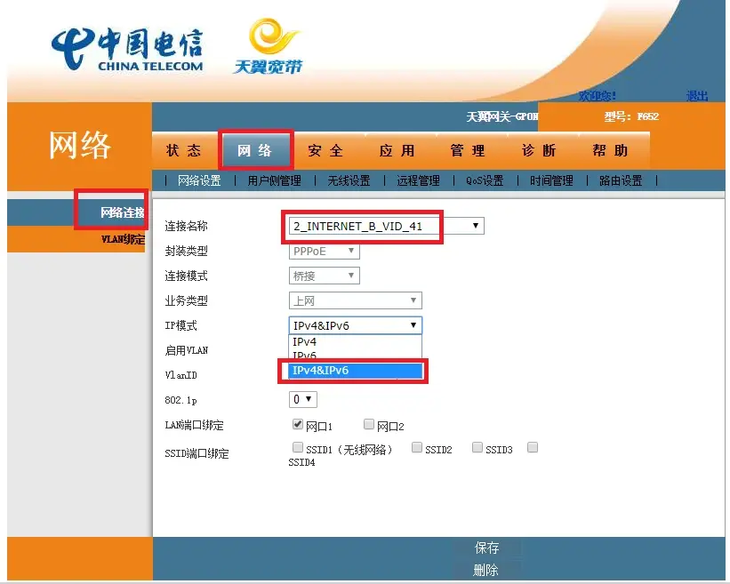 !注意若未删除旧的连接 就创建新的连接 可能会出现 LAN口无法绑定的现象!