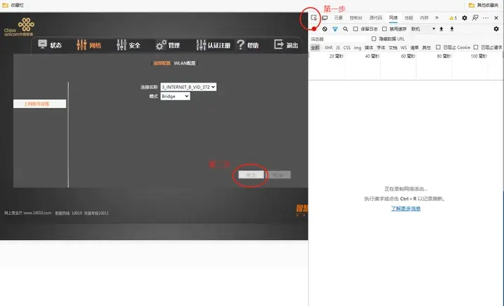 左侧选择网络连接 不同的运营商 不同的光猫 名称略有不同