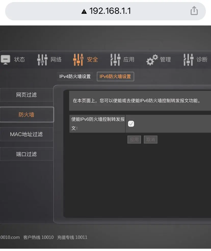 不同运营商 不同型号和固件的IPv6防火墙位置和表示方法都不同