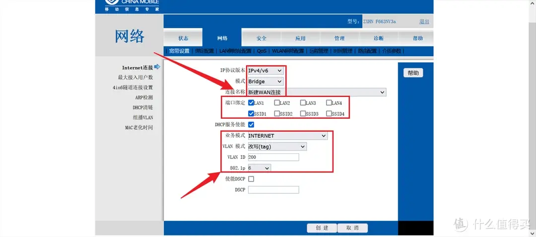 - VLAN模式: 以截图为准 (设置错误 会无法上网)