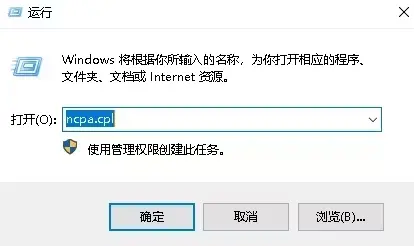 win+R 弹出运行 输入 ncpa.cpl 点击 确定