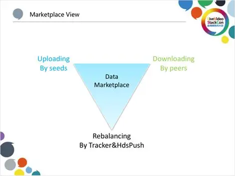在构建HCDN的过程中,实际上我们将其视为一个数据市场。在左边,我们把那些具有 上传能力的节点,称为seed(种子);在右边,把大量只需要下载数据的节点,称为 peer,它们主要是用来不停地及时下载数据以满足播放器解码渲染的数据需求,进而为 用户带来流畅的观看体验。而我们所做的事情就包括不停地重新再平衡具有上传能力的 节点数量,平衡它们的位置、存储数据的分布,使其可以时刻满足另外一些需要下载数 据的节点的需求。为此,我们添加了一些强干预的策略和措施来更好地平衡资源的供应 和需求。在这里,我们主要从供应端进行再平衡,因为需求主要是由于内容对用户在不 同周期的吸引力变化导致的,是因用户兴趣行为导致的,所以是不可预知的。