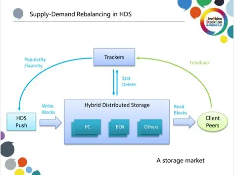 当我们把HCDN看作一个存储市场时,节点包括那些不同的PC、BOX等等,它们构成了一个Hybird Distributed Storage集群,Hybird是指这些节点本身的类型不一样,存储容量、上传能力等等也都是多样性的;节点是分布式的,在线与否也是不固定的。整体看这个网络,当我们调动它为Client APP服务时,相当于执行了存储系统中的“读操作”;而当我们不停的在网络中推送平衡数据时,相当于存储系统的“写操作”。整体上来讲,就是一个分布式存储,只不过存储量非常大,规模可能有几百个TB。我们通过云端的Tracker实时的追踪这些资源的上传、存储和分布状态,进行存储的再平衡。