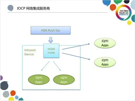 IOCP网络集成服务商是指做单位或园区宽带接入的服务商,他们会集成爱奇艺的HCDN Inside软件,在它的X86的服务器下面,就可以存主动的、动态的存很多爱奇艺的内容。同时,也可以服务它内网的用户,以此来节省一些上行链路带宽,如果还有冗余,它也能服务一些外网的用户,这样就会带来一些营收。我们的开放缓存计划IOCP(iQIYI Open Cache Program),实际上是一个资源流量分账的业务。