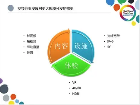 就当前行业来说,随着基础设施越来越好,光纤宽带、宽带中国政策的推进,很多家庭接入的带宽可以达到50M~100M。另外,IPV6的快速推进以及5G网络的发展,也都使得带宽变得越来越高。对于用户来讲,他们对内容的需要会变得更加多样化,包括VR视频、4K/8K的超高分辨率的视频、HDR视频。VR视频带来的带宽的急速翻倍, 4K/8K的超高分辨率的视频和HDR视频都会使得用户对体验越来越苛刻,也会使得视频服务平台的带宽进一步上涨。从内容的角度来讲,我们提供长视频、短视频、互动直播并引入优秀的体育赛事节目,整体上会带动对大规模分发、大规模带宽的需要。所以对IOCP更大规模的分发业务来说,现在并不是发展结束,而是代表着新一轮发展的开始。