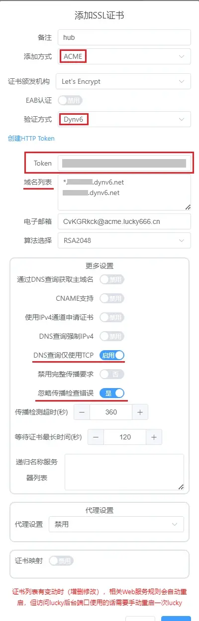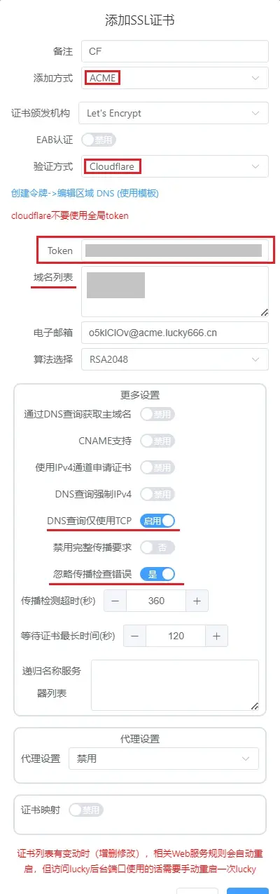 成功申请到的证书被 加密存储在lucky内部 可被内置的web服务所使用