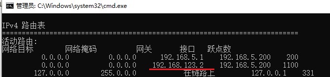 检查路由表 route print -4