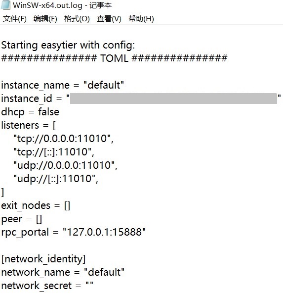 将其中的配置信息复制下来保存到EasyTier的目录下 文件名为 config.yaml