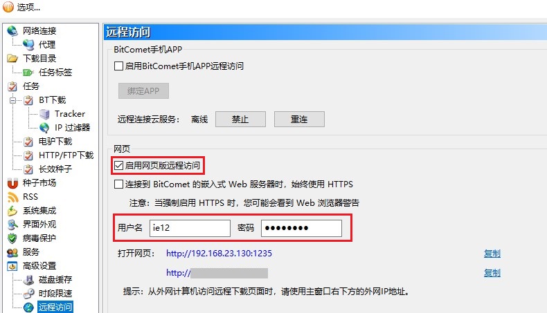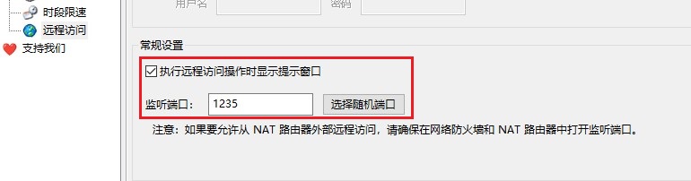 启用 远程下载 设置 用户名和密码 并检查端口号