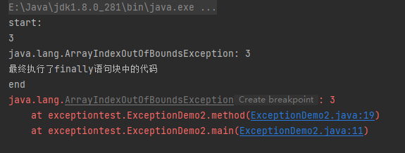 // 输出结果:java.lang.ArrayIndexOutOfBoundsException: 3