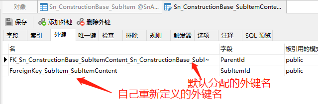 'SubItemContent' 上的外键 {'SubItemId'} 和 'SubItemContent' 上的 {'ParentId'} 都映射到 'Sn_ConstructionBase_SubItemContent.FK_Sn_ConstructionBase_SubItemContent_Sn_ConstructionBase_SubI~',但引用了不同的主体表('Sn_ConstructionBase_SubItem' 和'_Sn_SubItemContent')。