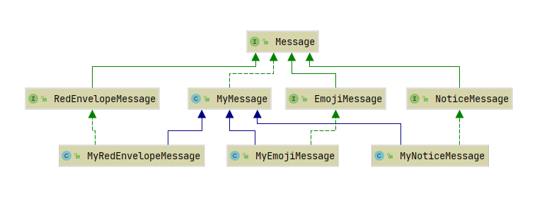 Message类继承自MyMessage类,可以更好地完成实现,避免代码上的重复。 -