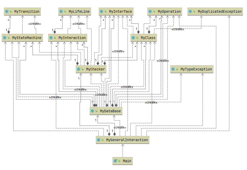 创建MyDataBase类,用于对传入的元素进行解析,同时存储在不同的容器中,向MyGeneralInteraction提供getClass、getStateMachine、getInteraction这三个判重再返回的方法。