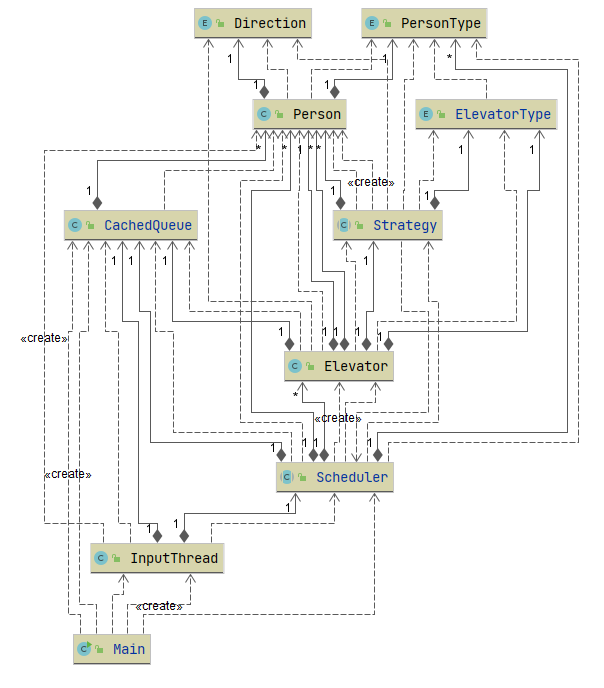 - 关注调度的算法,以减少电梯运行的总时间、减少乘客的等待时间为目的,以充分调度电梯、速度块且可达的电梯优先为方法