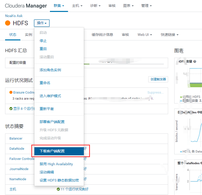 1)登录CDH,点击HDFS->操作->下载客户端配置