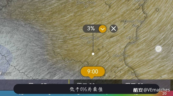 选好地点后,你还需要一个晴朗的夜晚,你可以在“Windy”APP查看未来五天内云层遮挡情况。在选项中找到“云层”,点击地图,便可查看该地域云层覆盖率,低于6%为最佳。