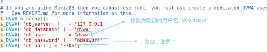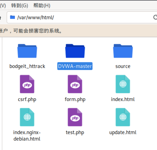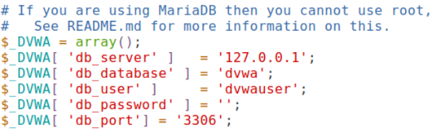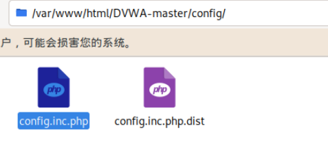 于 /var/www/html/DVWA-master/config/ 下,将文件config.inc.php.dist 改名为 config.inc.php