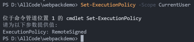 1. 以管理员身份运行VS Code,打开终端,输入:Set-ExecutionPolicy -Scope CurrentUser