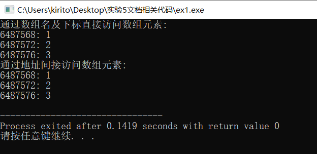 4. 对比line16-line17和line26-line27,体会它们通过指针变量间接访问一维数组时的差异和灵活