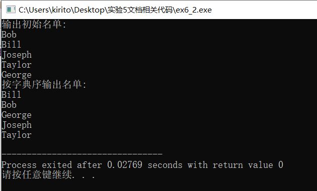 selectSort(name, N); // 调用选择法对name数组中的字符串排序