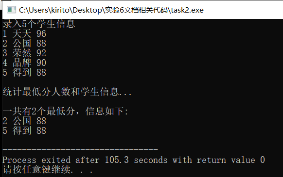 printf("\n一共有%d个最低分,信息如下:\n", count);